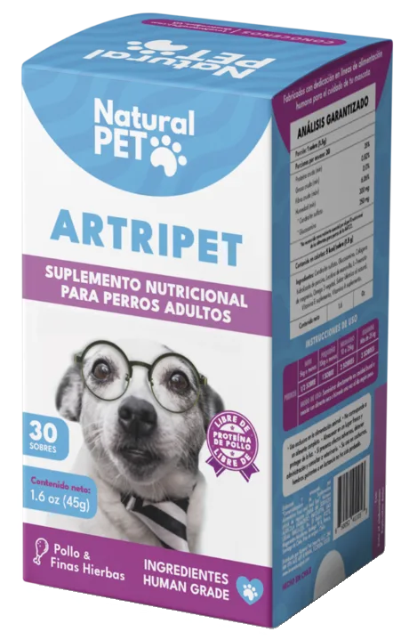 ARTRIPET es un suplemento alimenticio de uso animal elaborado por Natural PET by FNL. Está diseñado y formulado en base a ingredientes completamente naturales para beneficiar la salud articular y el bienestar de los huesos en perros adultos.