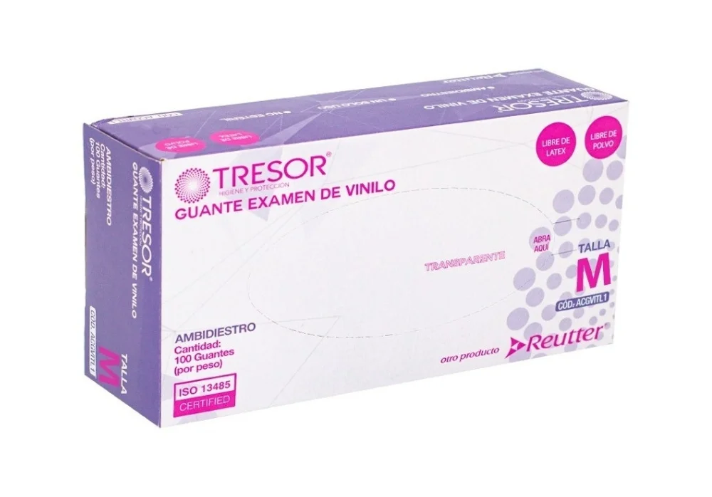 Guante examen Vinilo Talla M x 100 U Transparente cantidad