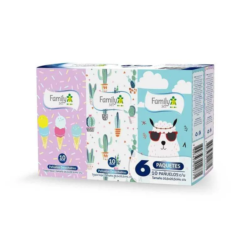 Pañuelo Desechable Triple Hoja, 6 paquetes de 10 pañuelos - Family set cantidad