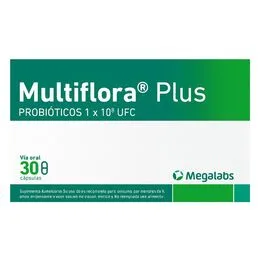 Composición: Cada porción contiene polvo liofilizado compuesto por 4,0×107 de Lactobacillus paracasei, 3,5×107 de Lactobacillus rhamnosus, 1,0×107 de Streptococcus thermophilus, 5,0×106 de Bifidobacterium breve, 5,0×106 de Lactobacillus acidophilus, 4,0×106 de Lactobacillus casei, 1,0×108 de Lactobacillus bulgaricus, 40,0 mg de ácido ascórbico (vitamina C), 6,0 mg de vitamina E acetato y 400,0 mg de vitamina A acetato.